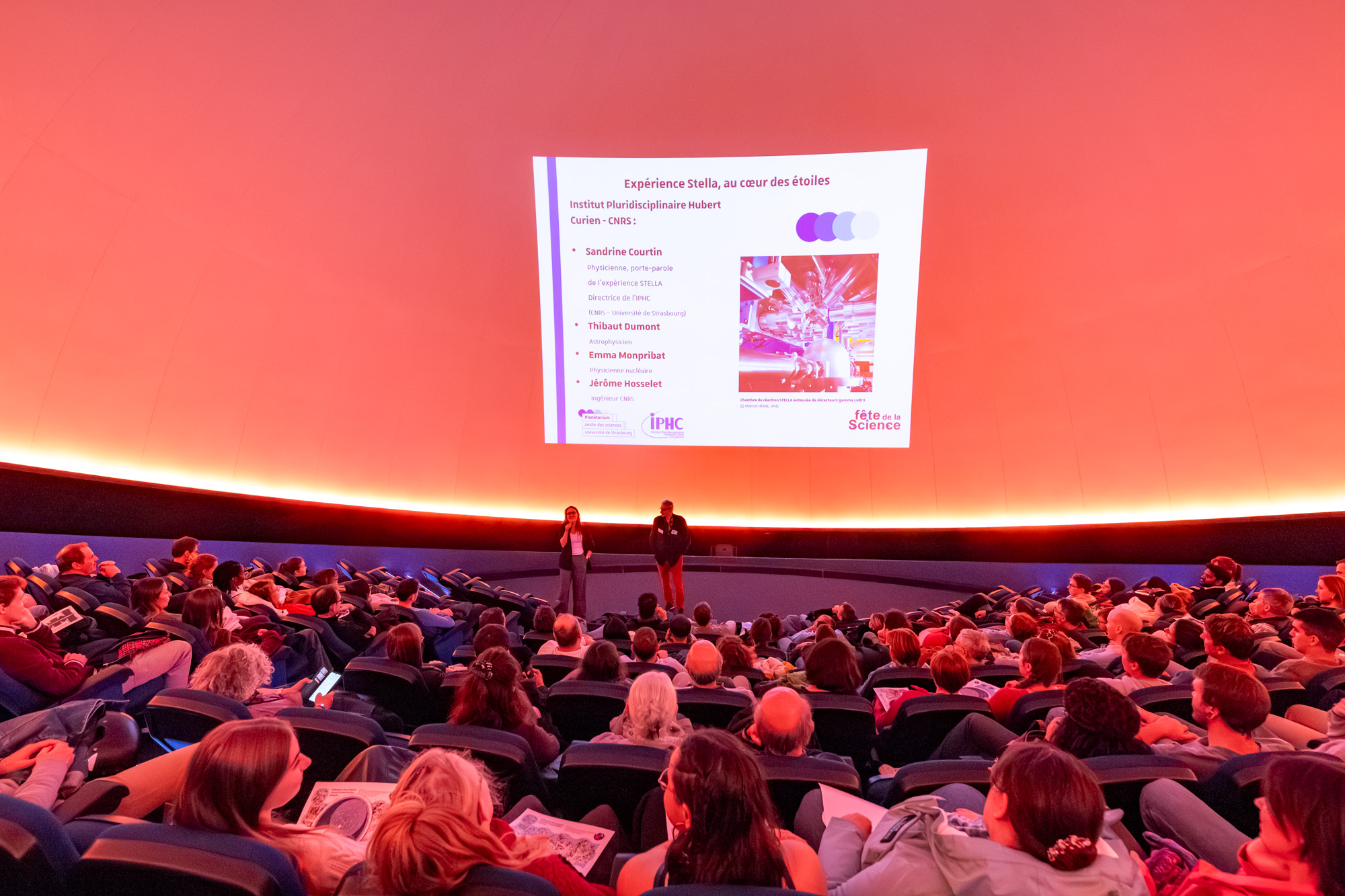 D’où vient l’énergie des étoiles, qui leur permet notamment de briller ? De leur cœur… où se produisent des réactions de fusion nucléaire. Pour comprendre ce phénomène, les scientifiques tentent de reproduire ces fusions en laboratoire. Au travers d’un film co-réalisé par les scientifiques de l’IPHC et l’équipe du Planétarium, vous découvrirez dans un premier temps la structure et l’évolution des étoiles, puis les éléments du dispositif de physique nucléaire expérimentale STELLA (Stellar Laboratory) et comment sont réalisées les mesures. Le commentaire en voix off sera donné en direct par Thibaut Dumont (Astrophysicien) et Emma Monpribat (Physicienne nucléaire). Vous pourrez poursuivre les échanges avec eux et Sandrine Courtin, Professeure en physique nucléaire et Directrice de l’IPHC.