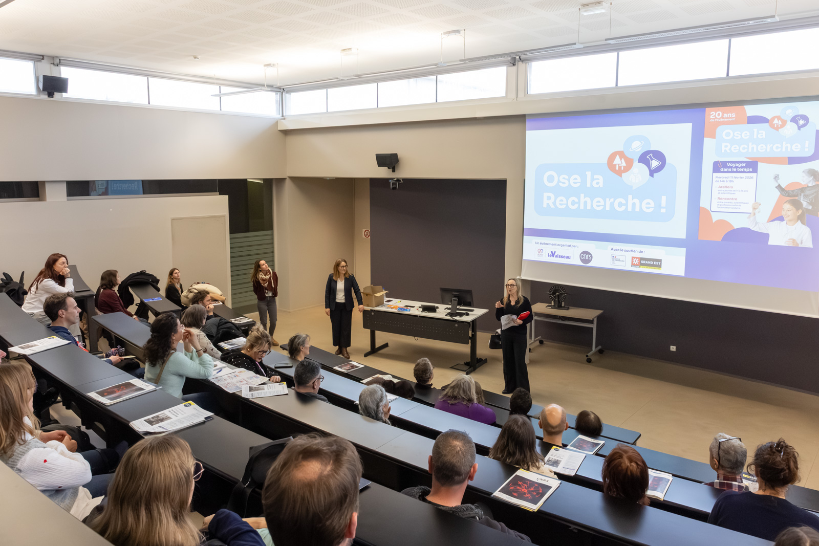 Le mercredi 11 février 2026, nous avons participé à la 20ème édition de l’événement « Ose la Recherche », qui s’est tenu pour la première fois sur le Campus CNRS de Cronenbourg. Son objectif est de favoriser les rencontres et les discussions libres entre des scientifiques et des collégiens et lycéens, et de permettre à ces jeunes (et à leurs parents) de mieux comprendre la diversité des métiers de la recherche et les chemins possibles pour y accéder.