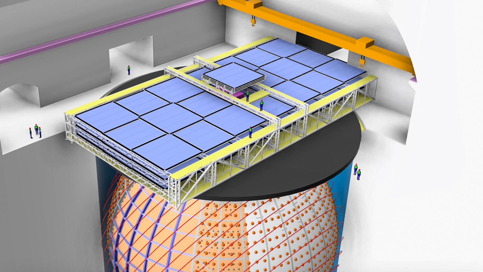 Le Top Tracker, étant au-dessus du détecteur central de JUNO, c’est la dernière partie de l’expérience à être installée.
